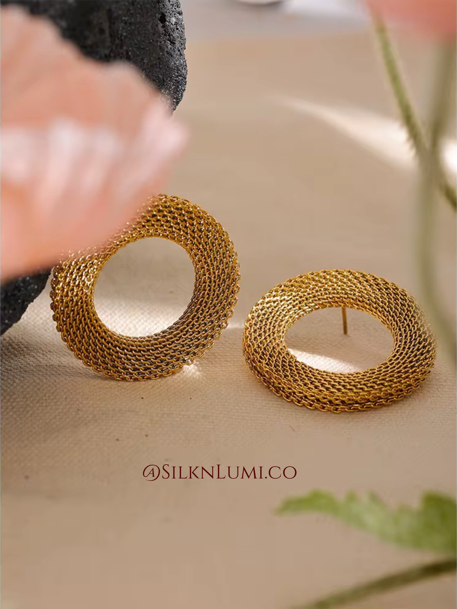 The Efua Textured Hollow Studs -Crafted in rich gold, these small, hollow studs feature a unique textured finish that adds depth and elegance. Their lightweight design ensures comfortable wear while making a subtle yet sophisticated statement, perfect for daily wear or special occasions.