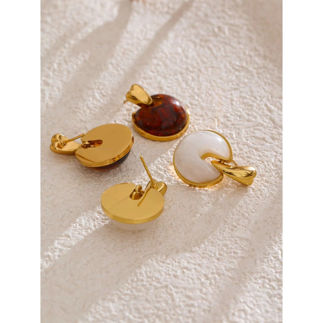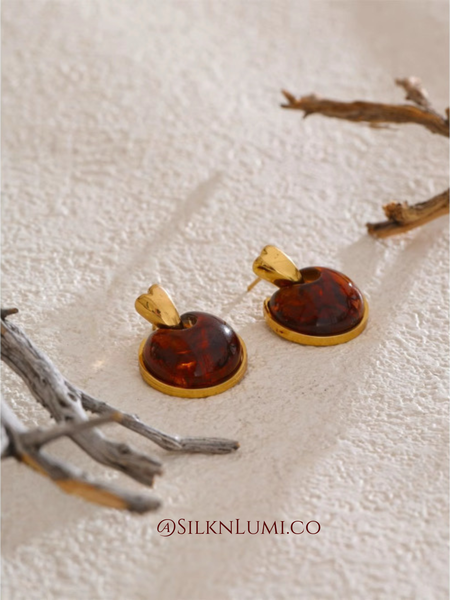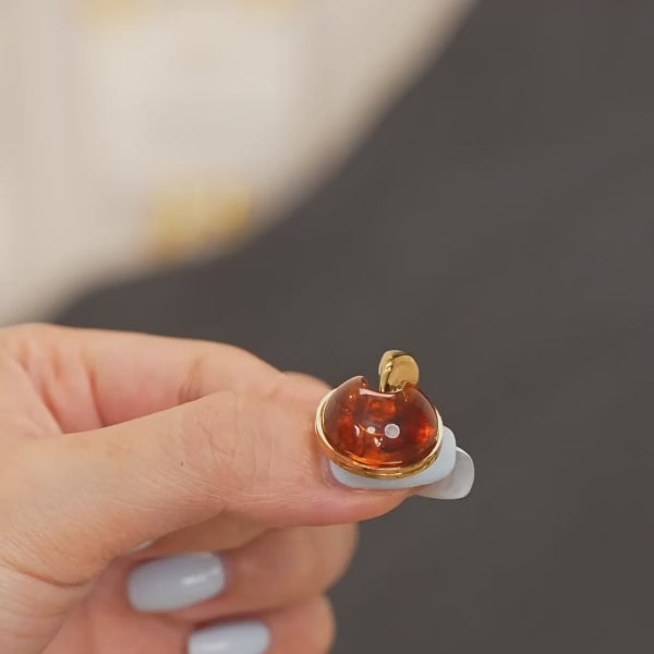 A dainty, gold-rimmed pearl low droop in wine and cream.