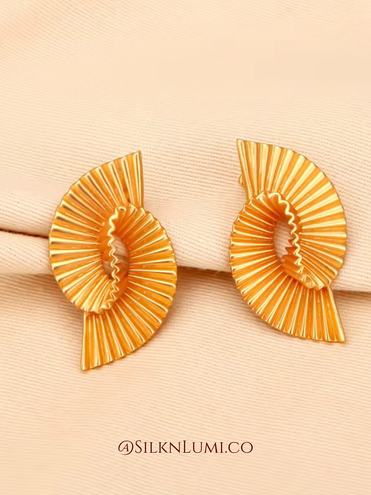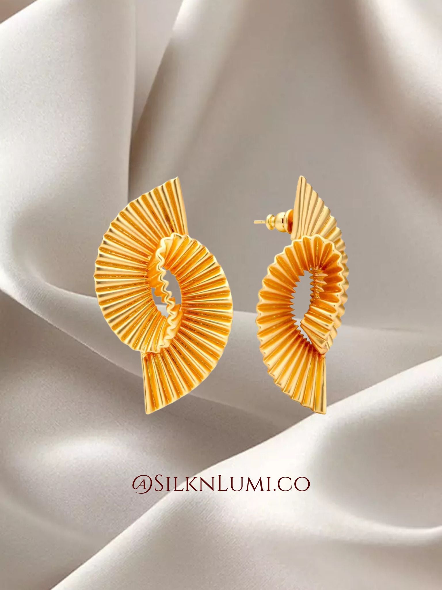 Elevate your elegance with the Lumi Pleated Earrings, a luxurious statement piece that complements any refined ensemble. This intricate pleated design captures light beautifully, adding a subtle shimmer that enhances your natural grace. Perfect for occasions where sophistication is paramount, these earrings embody timeless style and effortless glamour.